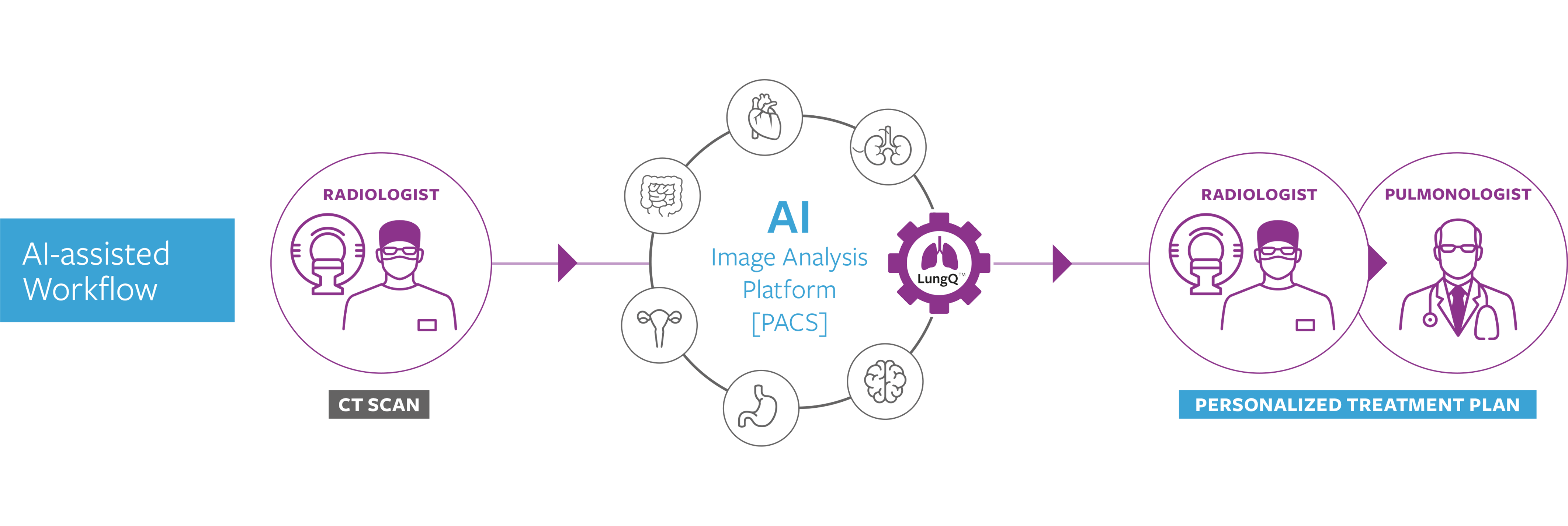 The conventional clinical care process is usually quite time-consuming for the clinical team and can be error-prone due to the extent of effort required. AI-assisted workflow has been proven to streamline the process of getting personalized care. The LungQ software enables pulmonologists to obtain automatically generated precise quantifications of diseases areas fast, and to define personalized treatment plans with more confidence.