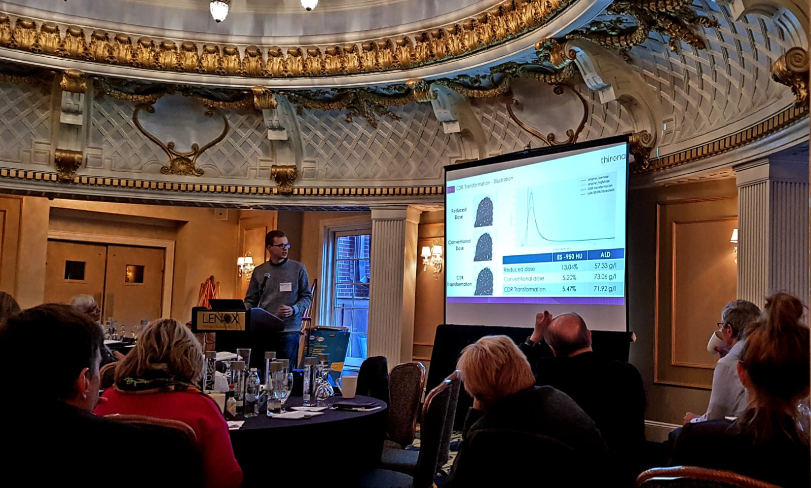Last week, Rudolfs Latisenko, data scientist at Thirona,  presented our deep learning approach for reducing dose-related noise on low dose CT at the COPDGene 2019 fall meeting in Boston. The developed model estimates conventional dose CT from reduced dose acquisitions using Cycle-consistent Generative Adversarial Networks (CycleGAN) and was developed in collaboration with Stephen Humphries and David Lynch from National Jewish Health. Rudolfs did an excellent job explaining the impact of our work to the community and showed that our method substantially reduces the dose-introduced variation in CT quantified emphysema within COPDGene.